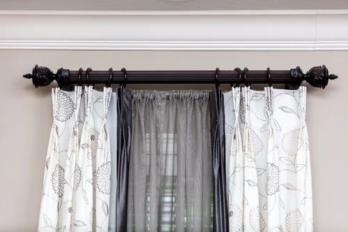 Architectural rods finials and mounting systems securely installed to ensure your custom fabrics hang flawlessly.
