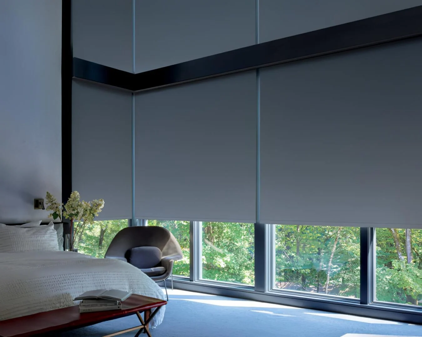 Elegant Roman cellular and roller shades featuring advanced motorization for effortless natural light management.