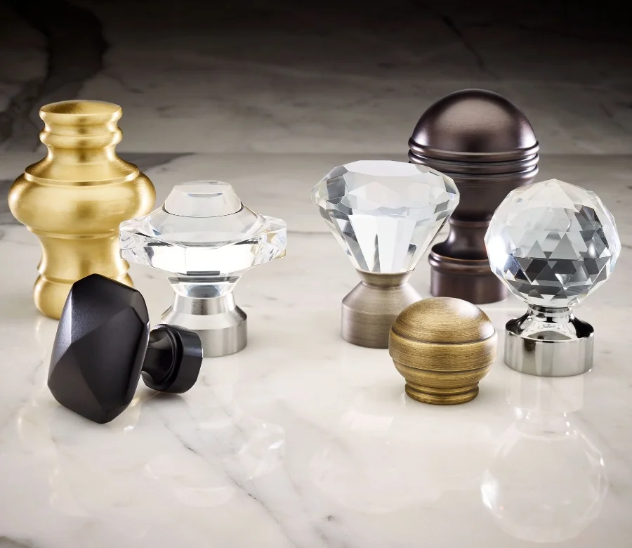 Decorative drapery rods — The classic visible rod-and-bracket system. Available in a wide range of materials: steel, iron, wood, and aluminum. We help you select the right rod diameter, bracket projection, and finial style for your drapery weight and your room’s aesthetic.